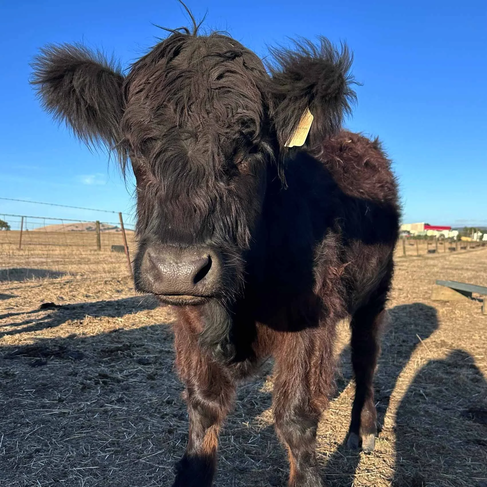 Gladstone is an incredibly friendly and affectionate black Highland steer — the kind of animal who will happily become your best mate. He loves a cuddle, enjoys human interaction, and has a relaxed, dopey charm that makes him a joy to have around. Gladstone would suit a lifestyle property or as a paddock pet for anyone wanting a steer with loads of character and a gentle nature. He’s a special little steer who is sure to steal your heart.