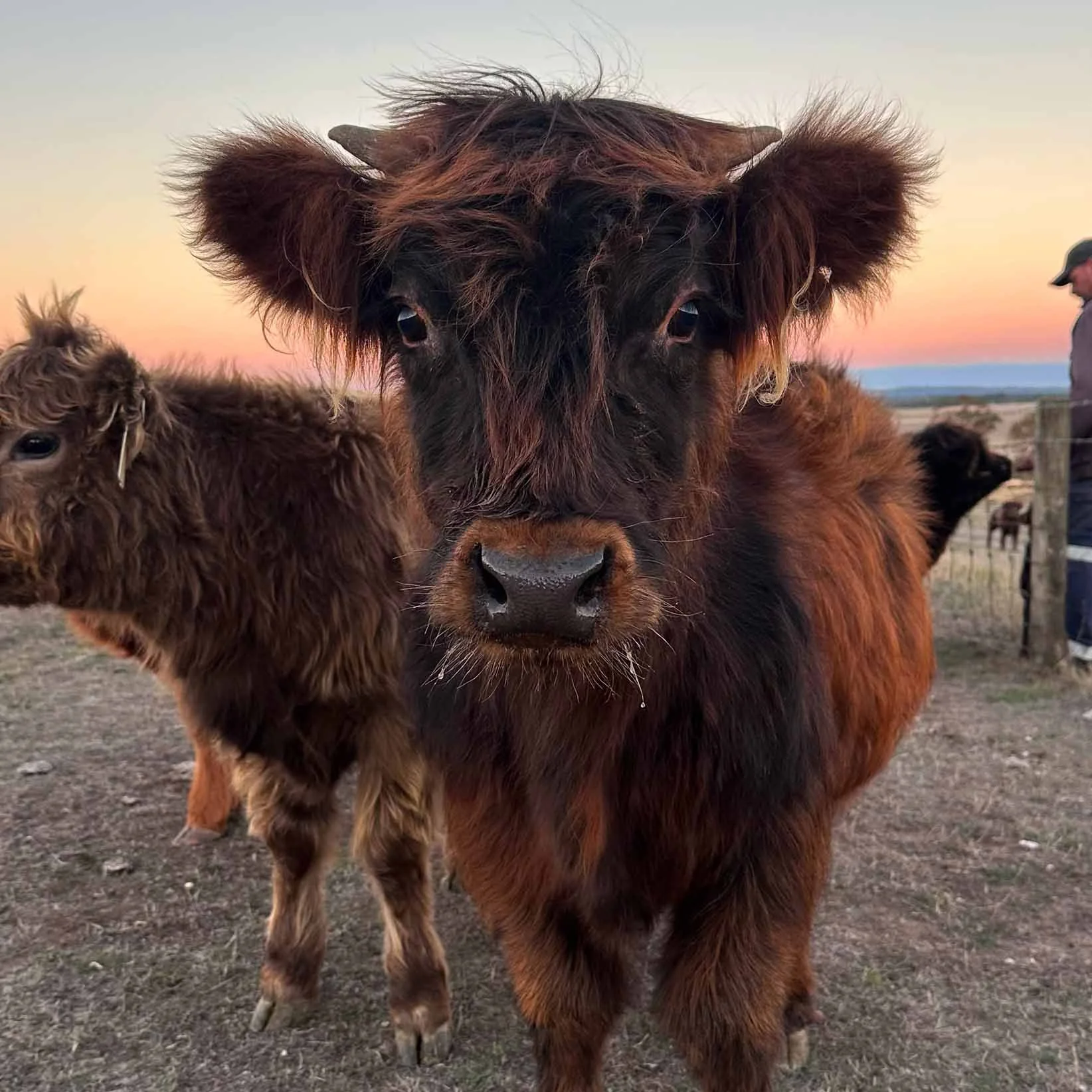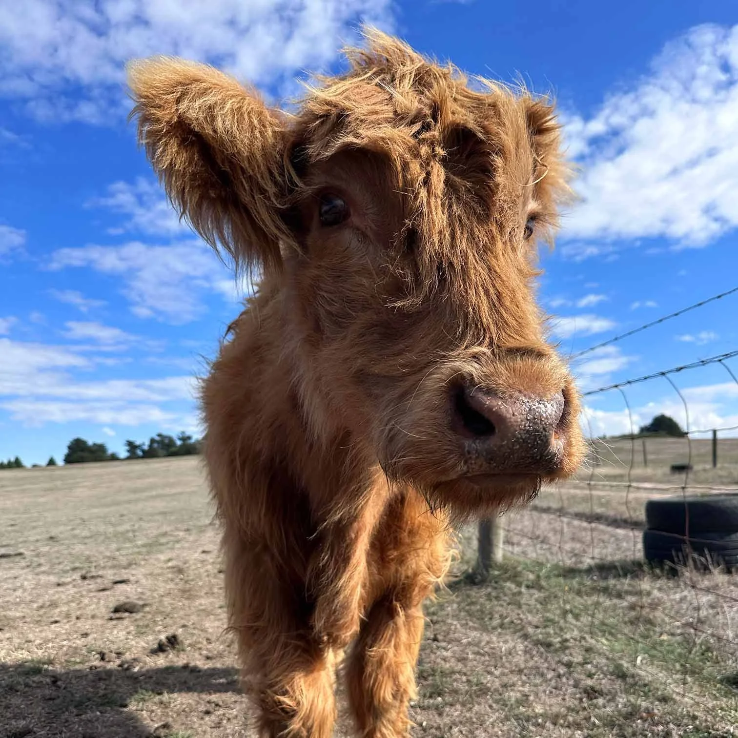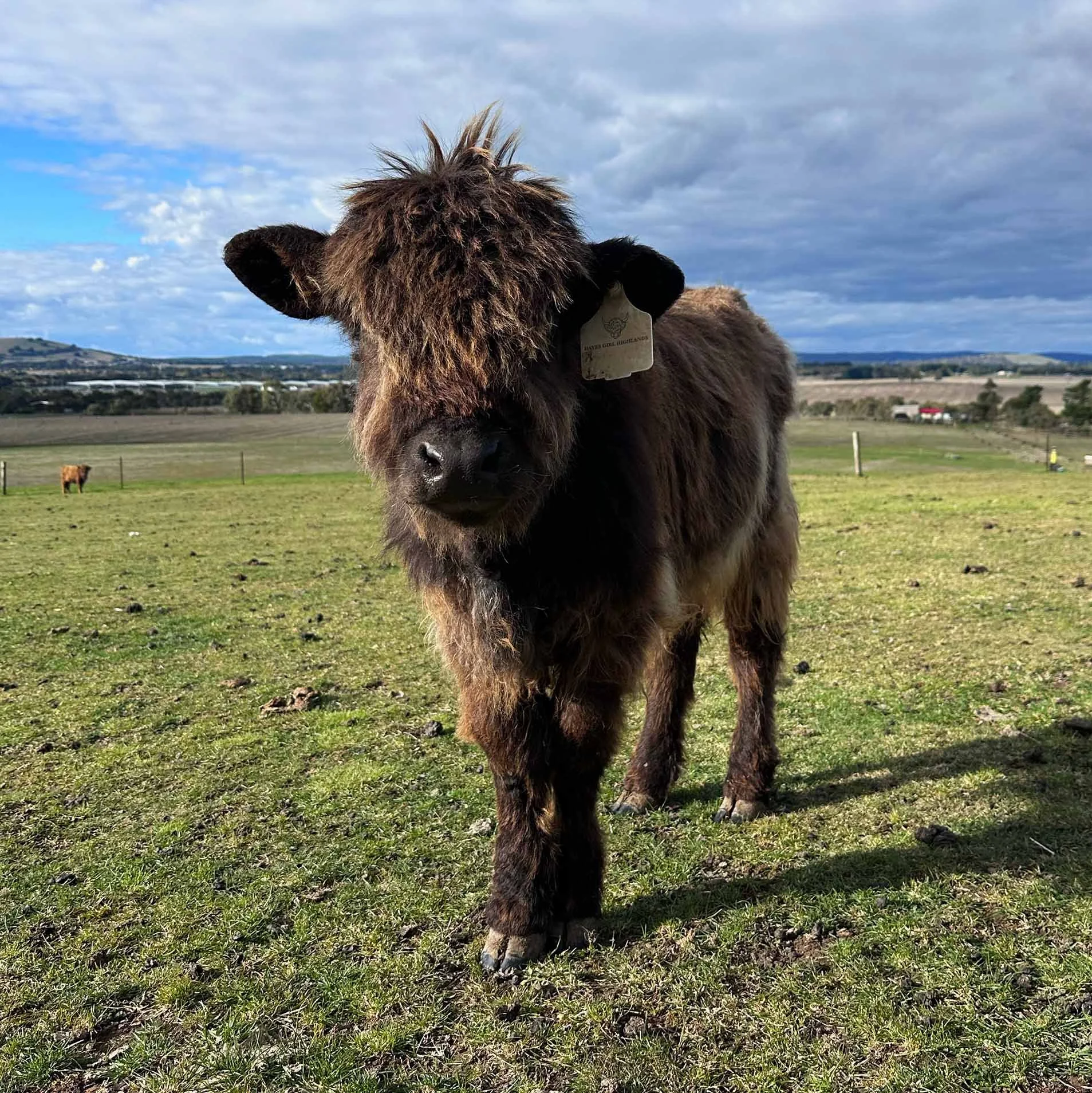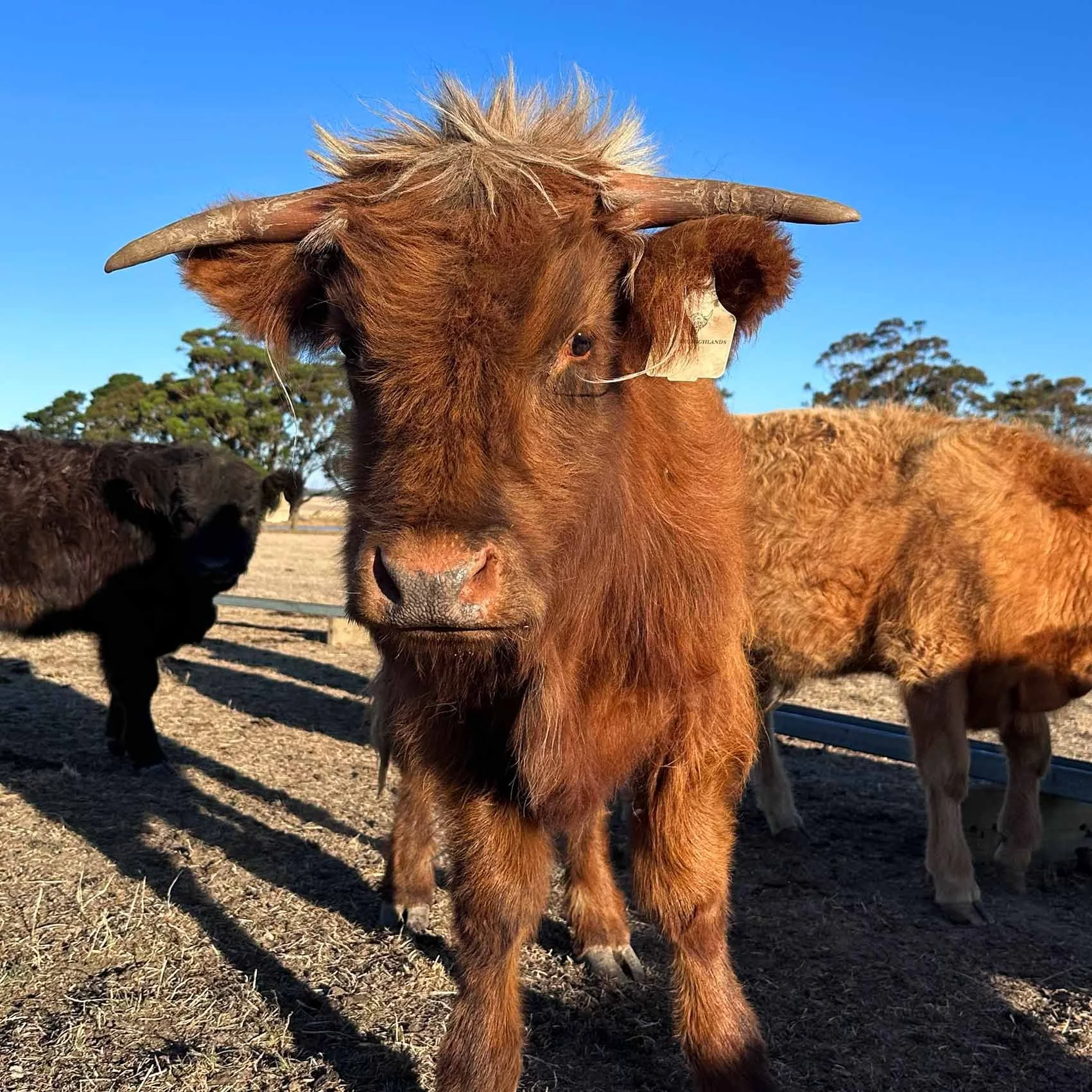 George is a friendly, well-socialised Highland steer raised on our family farm just outside Ballarat. He is used to people and dogs, can be hand-fed, and is always up for a good head scratch. George would make a great addition to a hobby farm or as a paddock pet — an energetic, character-filled steer who’s easy to have around.